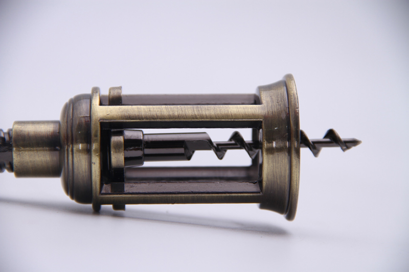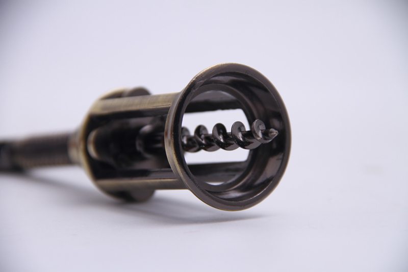 இந்த ஒயின் ஓப்பனர் வழக்கமான டிசைன்களில் இருந்து ஒரு தனித்துவமான விலகலை வழங்குகிறது, இதில் இரண்டு தனித்துவமான கூறுகள் உள்ளன: அதன் பழங்கால பித்தளை பாட்டினா பூச்சு மற்றும் சுழல் வடிவ கார்க்-இழுக்கும் பொறிமுறை. வயதான மேற்பரப்பு காலமற்ற கைவினைத்திறனைத் தூண்டுகிறது, அதே நேரத்தில் புதுமையான சுழல் வடிவமைப்பு சிரமமற்ற மற்றும் நேர்த்தியான அன்கார்க்கிங்கை உறுதி செய்கிறது.