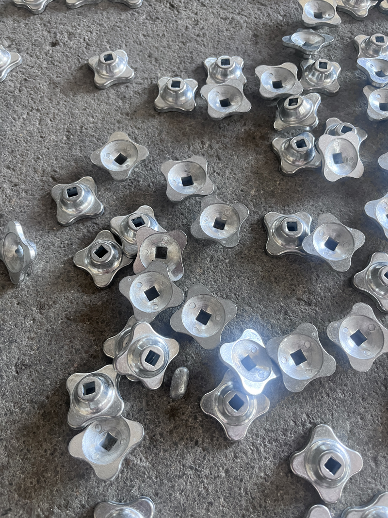 தனித்துவமான 'பச்சை பழங்கால தாமிரம்' பூச்சு தயாரிக்கும் ஒரு சிறப்பு மின்முலாம் பூசுதல் நுட்பத்தின் மூலம் இறுதி வண்ணம் அடையப்படுகிறது. இந்த முறையானது குரோம்-முடிக்கப்பட்ட சமையலறை கருவிகளான தோலுரித்தல், பூண்டு அழுத்தங்கள் மற்றும் நட்டு பட்டாசுகள் போன்றவற்றுக்குப் பயன்படுத்தப்படும் அதே முலாம் பூசுதல் செயல்முறைகளுடன் சீரமைக்கிறது, ஆனால் ஒரு தனித்துவமான சாயலுடன். ஏக்கம் அழகியல்.